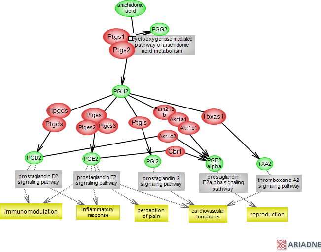 Ptgs1 Alzheimer's disease , Anaphylaxis , autism spectrum disorder , bipolar disorder , Brain Injuries , brain ischemia , breast cancer , Breast Neoplasms , Bronchial Hyperreactivity , carcinoma , cervix carcinoma , congestive heart failure , Creutzfeldt-Jakob disease , drug allergy , end stage renal disease , endometrial carcinoma , Esophageal Neoplasms , esophagus adenocarcinoma , Experimental Arthritis , Experimental Autoimmune Encephalomyelitis , Experimental Autoimmune Neuritis , Experimental Diabetes Mellitus , Experimental Liver Cirrhosis , Experimental Radiation Injuries , Flushing , gastric ulcer , glaucoma , glioblastoma , gliosarcoma , Hemorrhage , hepatic encephalopathy , Hyperalgesia , Intestinal Polyps , Nasal Polyps , occupational asthma , ovarian cancer , ovarian cyst , Ovarian Neoplasms , Pain , Perennial Allergic Rhinitis , Peripheral Nerve Injuries , polycystic kidney disease , pre-eclampsia , renal cell carcinoma , renovascular hypertension , Reperfusion Injury , rheumatoid arthritis , salivary gland carcinoma , Seasonal Allergic Rhinitis , Sleep Deprivation , Spinal Cord Injuries , ulcerative colitis Ptgs2 abdominal aortic aneurysm , acute kidney failure , Acute Liver Failure , Acute Lung Injury , adenocarcinoma , Adrenal Gland Neoplasms , Albuminuria , Alcohol Withdrawal Delirium , allergic rhinitis , Alzheimer's disease , amyotrophic lateral sclerosis , Anaphylaxis , Anorexia , arteriosclerosis , asphyxia neonatorum , aspirin-induced respiratory disease , asthma , atherosclerosis , autistic disorder , avian influenza , B-Cell Chronic Lymphocytic Leukemia , B-cell lymphoma , Barrett's esophagus , bipolar disorder , bladder neck obstruction , Bone Fractures , Bone Neoplasms , Brain Injuries , brain ischemia , Breast Neoplasms , Burns , Cachexia , Calcification of Aortic Valve , carcinoma , Cardiac Arrhythmias , cardiomyopathy , cardiovascular system disease , Cerebral Hemorrhage , cervix uteri carcinoma in situ , Chagas disease , Chemical and Drug Induced Liver Injury , cholangiocarcinoma , chronic obstructive pulmonary disease , chronic rhinosinusitis with nasal polyps , cognitive disorder , colitis , Colonic Neoplasms , Colorectal Neoplasms , congestive heart failure , coronary artery disease , Cough , COVID-19 , Creutzfeldt-Jakob disease , Crohn's disease , cryptorchidism , cystic fibrosis , cystitis , demyelinating disease , depressive disorder , diabetes mellitus , Diabetic Nephropathies , diabetic neuropathy , disease of cellular proliferation , Drug-Related Side Effects and Adverse Reactions , ductal carcinoma in situ , duodenal ulcer , Edema , end stage renal disease , Endometrial Neoplasms , endometriosis , Endotoxemia , Esophageal Neoplasms , esophagitis , esophagus adenocarcinoma , esophagus squamous cell carcinoma , Experimental Arthritis , Experimental Autoimmune Encephalomyelitis , Experimental Autoimmune Neuritis , Experimental Diabetes Mellitus , Experimental Liver Cirrhosis , Experimental Mammary Neoplasms , Experimental Radiation Injuries , Experimental Seizures , familial adenomatous polyposis , Fetal Growth Retardation , Fever , Fibrosis , Gallbladder Neoplasms , gastric ulcer , gastritis , gastroesophageal reflux disease , glioblastoma , gliosarcoma , granulosa cell tumor , Graves ophthalmopathy , growth hormone secreting pituitary adenoma , head and neck squamous cell carcinoma , hepatocellular carcinoma , high grade glioma , human immunodeficiency virus infectious disease , Human Influenza , Huntington's disease , hydronephrosis , Hyperalgesia , Hyperemia , hyperglycemia , Hyperplasia , hypertension , Hypoxia , idiopathic pulmonary fibrosis , in situ carcinoma , Inflammation , inflammatory bowel disease , intestinal obstruction , Intestinal Polyps , invasive ductal carcinoma , kidney disease , Kidney Neoplasms , Laryngeal Neoplasms , Laryngeal Papillomatosis , Left Ventricular Hypertrophy , leiomyosarcoma , liver cirrhosis , lung cancer , lung disease , lung non-small cell carcinoma , Lymphatic Metastasis , melanoma , metabolic dysfunction-associated steatotic liver disease , Metabolic Syndrome , mouth disease , Mouth Neoplasms , myocardial infarction , Myocardial Reperfusion Injury , myocarditis , Nasal Polyps , Neoplasm Metastasis , Neoplasm Recurrence, Local , nephroblastoma , nephrotic syndrome , nervous system disease , Neurogenic Inflammation , obesity , obstructive sleep apnea , occupational asthma , open-angle glaucoma , oral mucosa leukoplakia , oral submucous fibrosis , osteoarthritis , Ovarian Neoplasms , Pain , pancreatic cancer , pancreatic ductal carcinoma , pancreatitis , papilloma , Parkinsonism , pericardial effusion , Peripheral Nerve Injuries , pleurisy , polycystic kidney disease , portal hypertension , pre-malignant neoplasm , Precocious Puberty , Premature Birth , prolactinoma , prostate cancer , prostate carcinoma in situ , prostatic hypertrophy , Prostatic Neoplasms , prostatitis , proteinuria , pulmonary emphysema , pulmonary fibrosis , pulmonary hypertension , renal cell carcinoma , Reperfusion Injury , retrograde amnesia , rheumatoid arthritis , sarcoidosis , schizophrenia , secondary hyperparathyroidism , Sepsis-Associated Encephalopathy , skin disease , Skin Neoplasms , Sleep Deprivation , Spinal Cord Injuries , squamous cell carcinoma , status epilepticus , steatotic liver disease , Stomach Neoplasms , stroke , Subarachnoid Hemorrhage , systemic lupus erythematosus , systemic scleroderma , thrombosis , Thyroid Neoplasms , Tongue Neoplasms , transitional cell carcinoma , traumatic brain injury , type 2 diabetes mellitus , ulcerative colitis , urinary bladder cancer , Urologic Neoplasms , Uterine Cervical Neoplasms , Ventilator-Induced Lung Injury , Wernicke encephalopathy