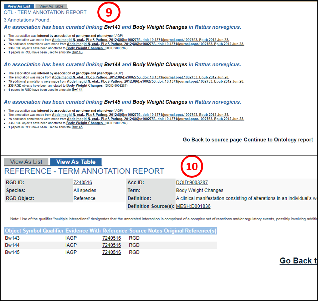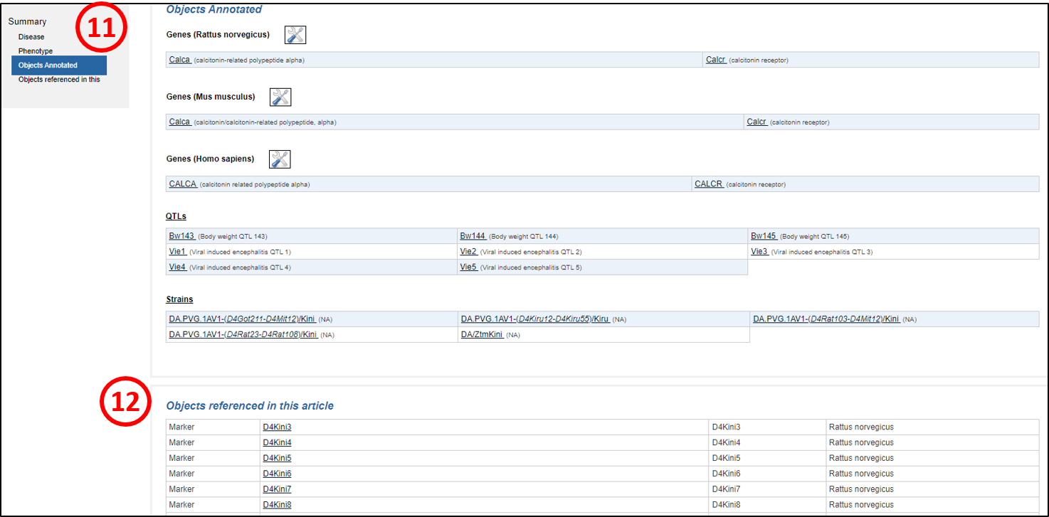 RGD has two types of references – curated and uncurated. The curation staff has manually reviewed curated references and information relevant to the database has been extracted into the database. Uncurated references are known to contain relevant data but have not yet been manually reviewed. These are found as PubMed links listed in the ‘References – uncurated’ section of an object report (e.g. a gene report).