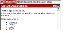 The Genome Viewer (GViewer) tool provides diagrams displaying genome wide chromosome locations of genes and QTLs annotated to the query results. Users have the options to view all the objects, to export data as a CSV file or to overlay more objects in the resulting diagram. The GViewer appears in a number of places on the RGD website, for instance a GViewer image appears on the ontology report pages. Also, you can view the results of a general search in GViewer by clicking the link on the search results page. GViewer is also available as a stand alone tool. The advantage of this tool is that it allows you to search for multiple terms across multiple ontologies using “Boolean” queries, i.e. you can search for objects annotated to both Term1 AND Term2, either Term1 OR Term2, Term1 but NOT Term2, and so on.