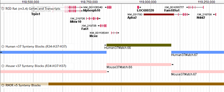 Feature length: The length in base pairs of the syntenic region in the originating species/assembly (in this case, rat v3.4).